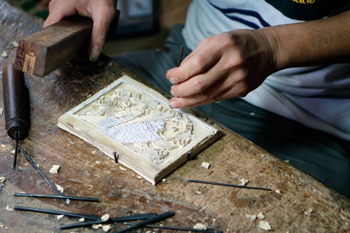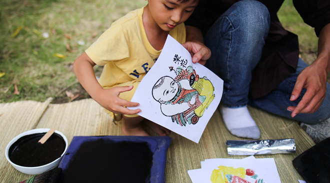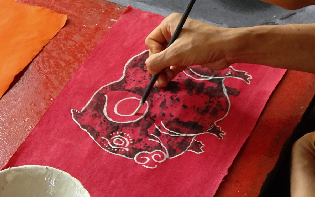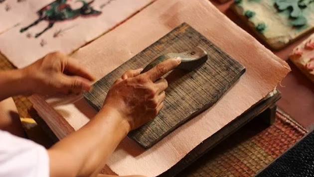 Tranh Đông Hồ từ A-Z: Xem tranh của các nghệ nhân, tự dùng khuôn làm tranh trên giấy dó.